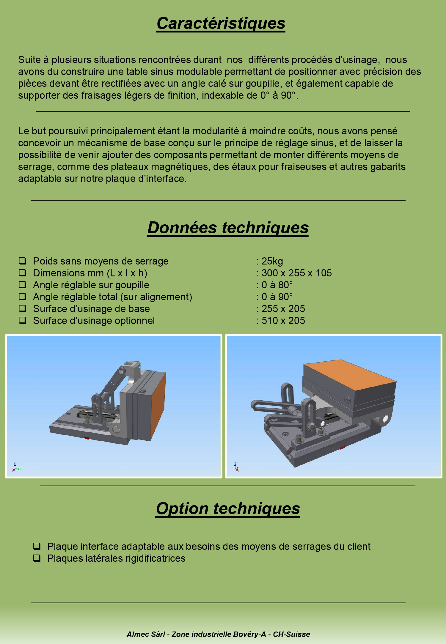 Suite à plusieurs situations rencontrées durant nos différents procédés d’usinage, nous avons du construire une table sinus modulable permettant de positionner avec précision des pièces devant être rectifiées.