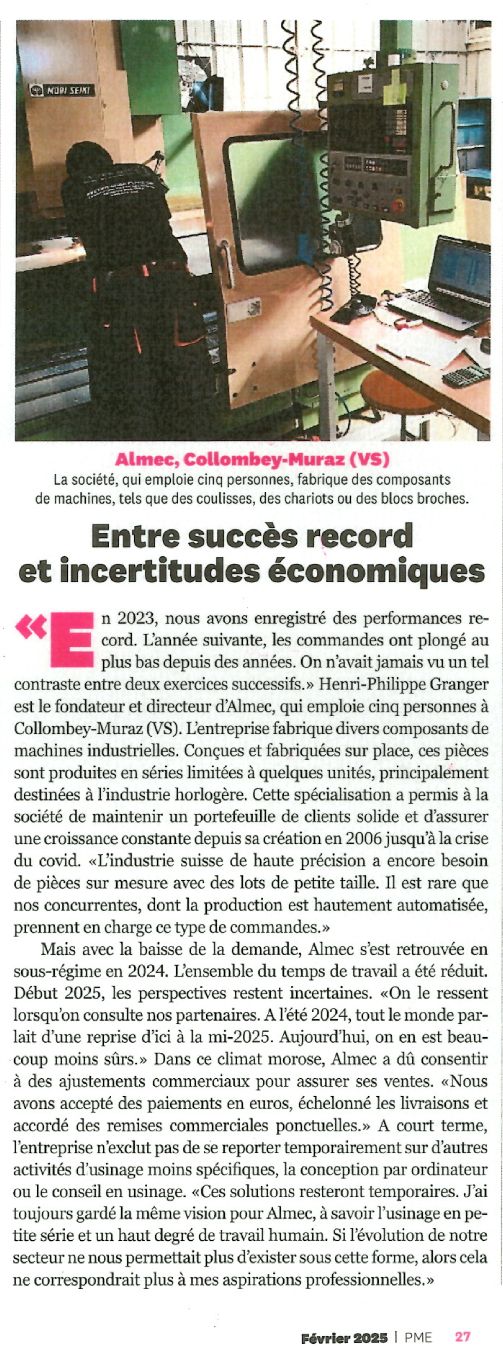 Logistique – usinage – montage – test et livraison avec un seul partenaire : Almec.