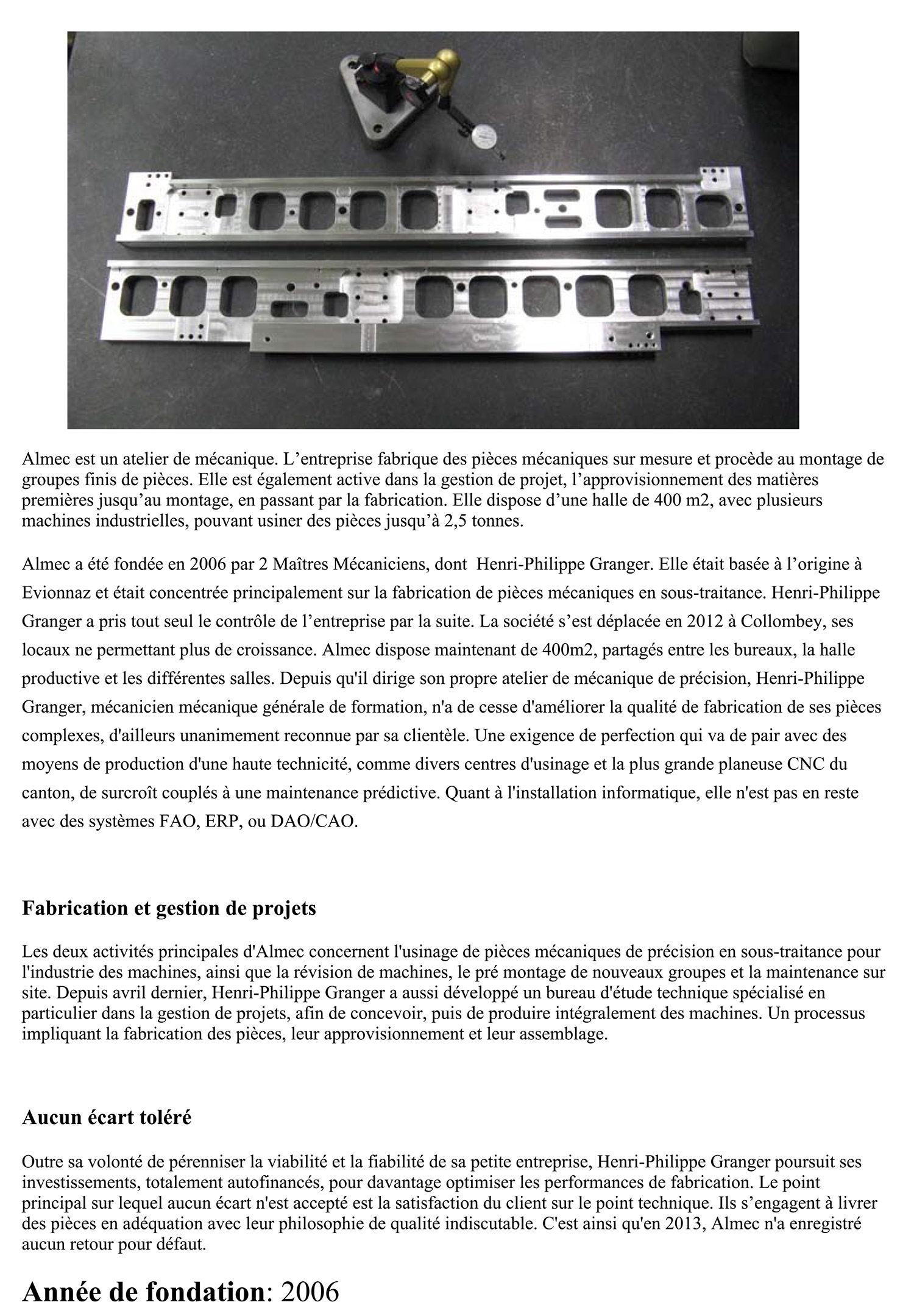 “L'usinage de précision, notre métier.”